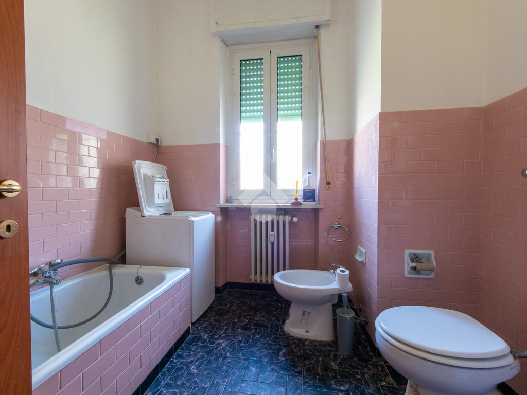 La zona notte è raggiungibile tramite un disimpegno utilizzabile anche come ripostiglio. Le camere da letto sono due, di cui una matrimoniale. Il bagno è finestrato con la vasca.