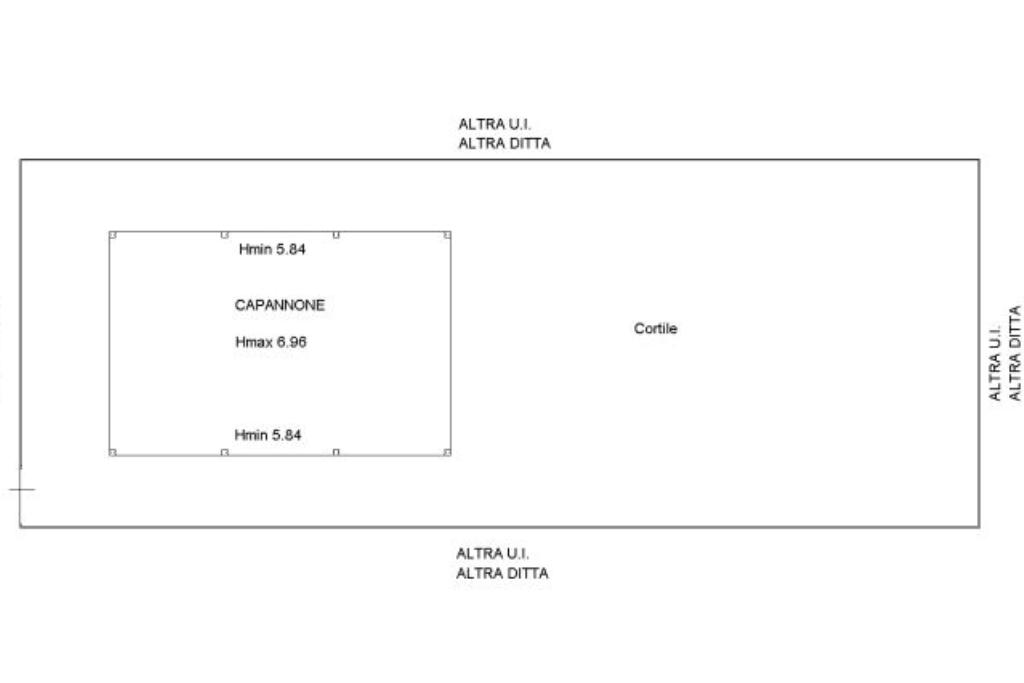 Il lotto è accessibile da una strada sterrata e conduce ad un appezzamento di circa 2.200 mq su cui è stato edificato nel 2004 un capannone di 612 mq, da completare. La sua altezza massima è di 6,96 m e quella minima è di 5,84 m.