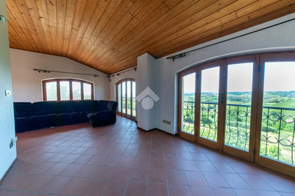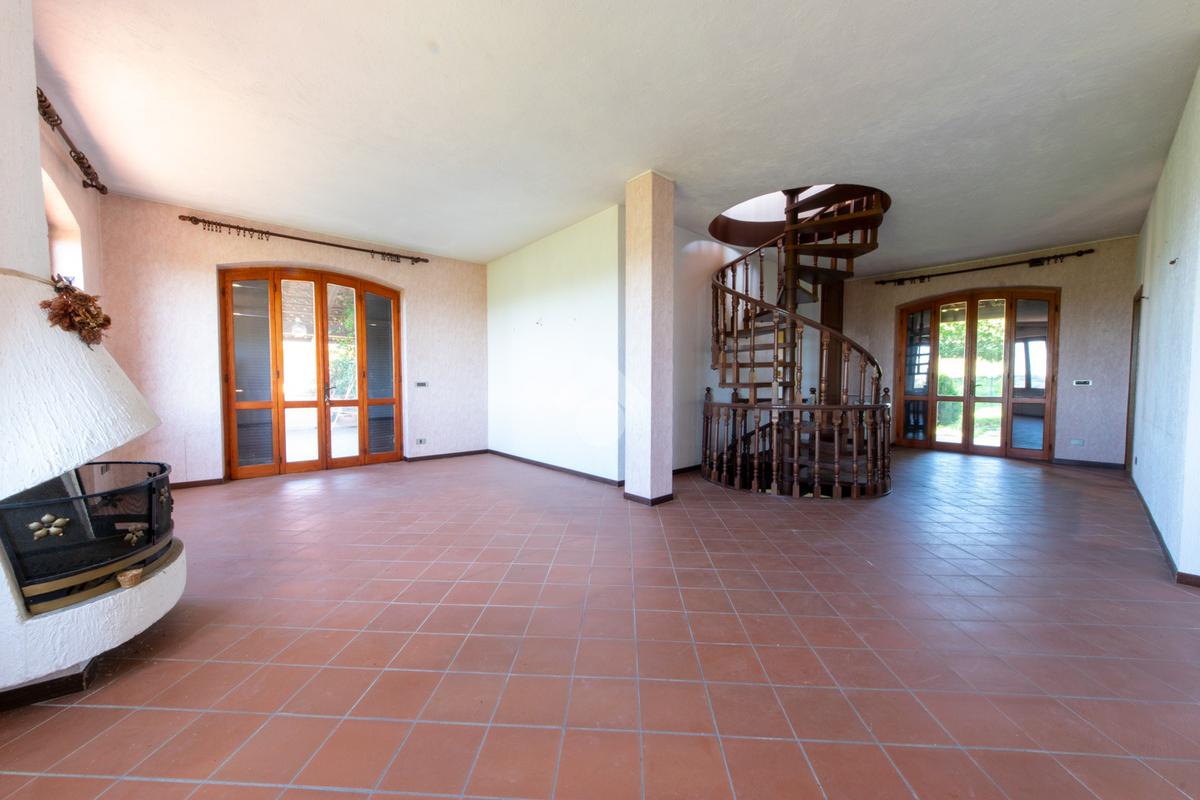 Situata sulle colline di Casale Monferrato, in cima a Salita Sant'Anna, a 3 Km dal centro città, in posizione ottimale per tranquillità e privacy, con splendida vista panoramica, villa indipendente circondata dal verde con giardino esclusivo e frutteto e possibilità di trasformazione in bifamiliare.