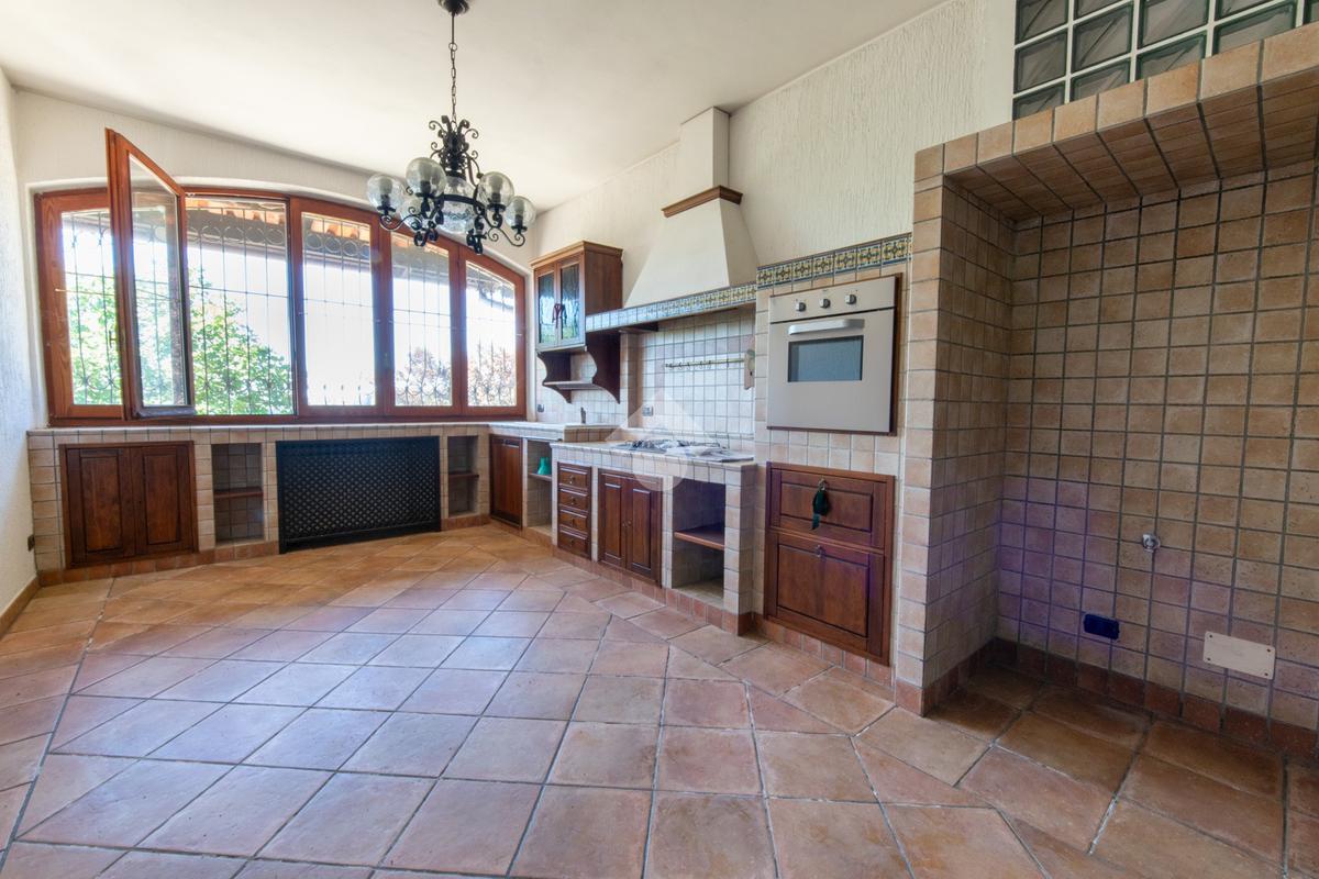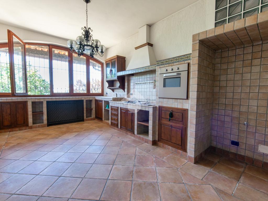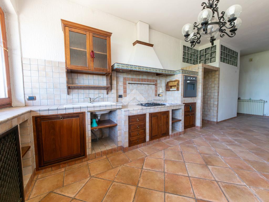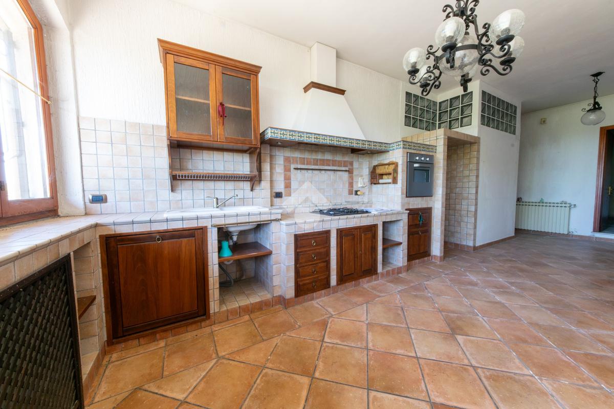 Completa il piano terra la cucina abitabile con vetrate panoramiche ed uscita sul balcone con affaccio sulla proprietà e sulle colline.