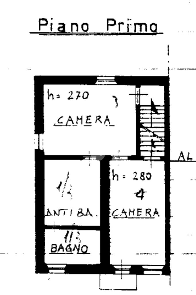 La scala interna porta al piano superiore che dispone di due camere da letto matrimoniali spaziose di cui una di queste con uscita sul balcone e vista panoramica sulle colline del Monferrato. Va ad ultimare il piano il bagno con vasca.