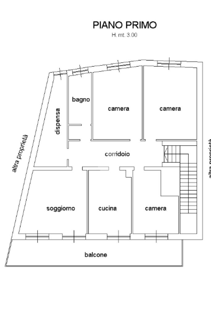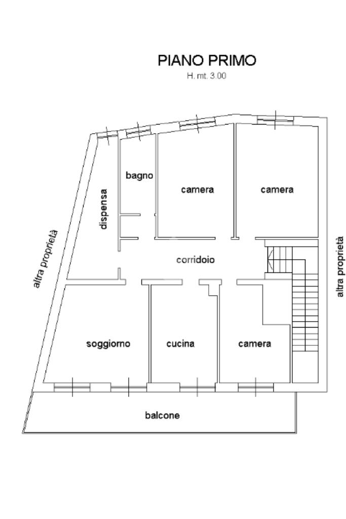 La scala interna porta al piano superiore, dove abbiamo tre camere da letto matrimoniali. La cucina è abitabile. Il soggiorno è ampio con camino funzionante e uscita sul balcone con vista panoramica. Il bagno è dotato sia di doccia che di vasca. Sul retro dell’abitazione è presente una porzione di terreno di proprietà ad uso esclusivo di circa 1.000 mq.