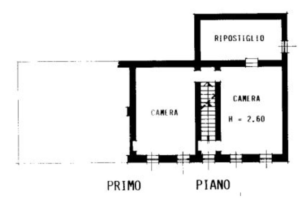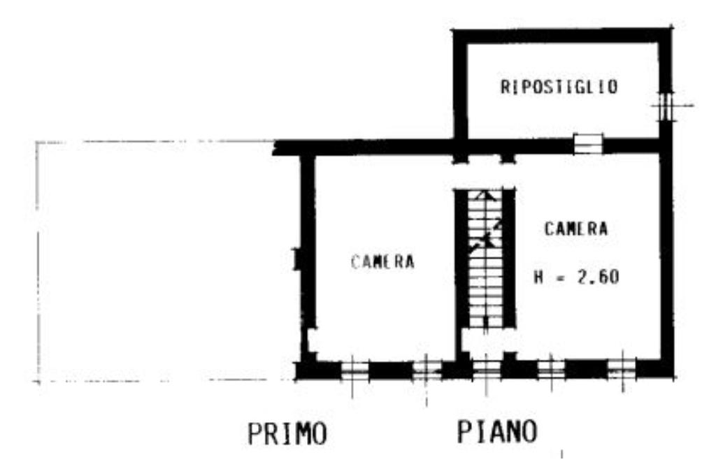 Salendo al primo piano abbiamo due ampie camere da letto con affaccio sul cortile grande e un altro locale di generose dimensioni accatastato come ripostiglio. Infine una scala interna conduce all’ampio sottotetto.