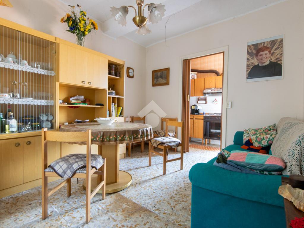 L’ingresso principale affaccia su un disimpegno che separa cucina/tinello dalla camera da letto con il bagno. Dalla camera è anche accessibile un balconcino che affaccia verso le colline. Completa il piano un ripostiglio.
