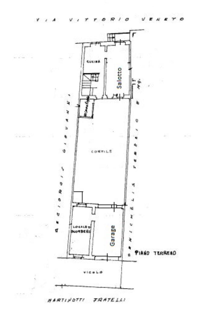 Un primo accesso l’abbiamo lungo questa strada che conduce nel salotto, comunicante con il cortile privato. Attiguo c’è la cucina di medie dimensioni dotata di finestra sempre rivolta verso la via principale.