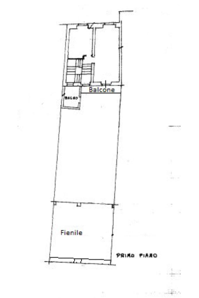 Il cortile è chiuso da un corpo di fabbrica in cui troviamo al piano terra un ampio box, il cui accesso è dato sul vicolo dietro alla casa, e da uno spazioso locale ad uso deposito. Infine al di sopra di questi locali abbiamo l’ex fienile, grande come i due locali sottostanti.